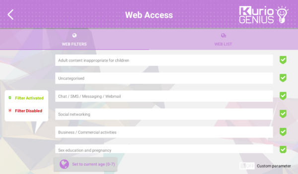 WARNING: These filters will only be functional on the “Kurio Browser” app.